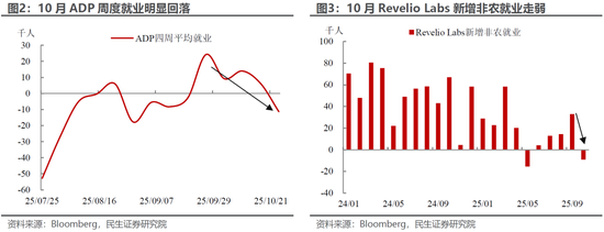就业方面,ADP最新估算表明,截至10月25日的四周内共减少4.5万个新增就业,创两年半以来最大降幅,Revelio Labs同样显示美国10月非农就业人数减少0.9万人(前值3.3万人);