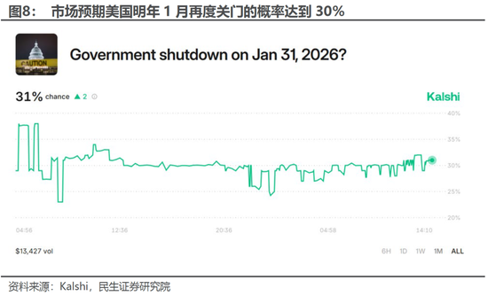 因此,两党在医保上的巨大分歧下,不排除明年1月底政府再次停摆的可能性(市场预期约为30%左右),以便为中期选举获得政治筹码。